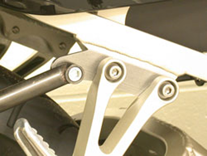 Top tube of wheelie bars mount to a special bracket attached to the passenger
