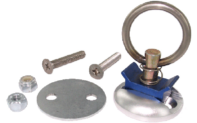 This tie-down fitting locks into a floor mounted anchor plate providing secure attachment of tie-down straps. Easy to remove when not in use. Excellent for use in pickups, vans and trailers. Mounting hardware included.
